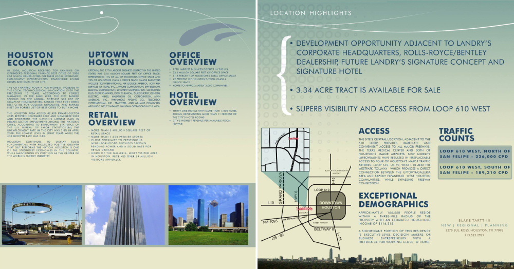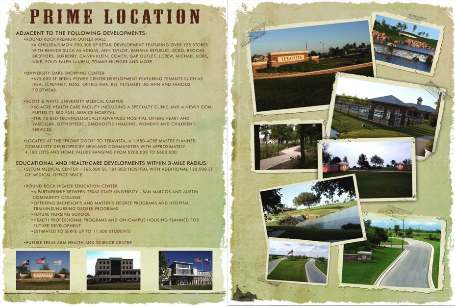 These flyers are just a few I’ve done for different companies. The main things needed for a flyer are: photos, maps/aerials, siteplans and demographics.